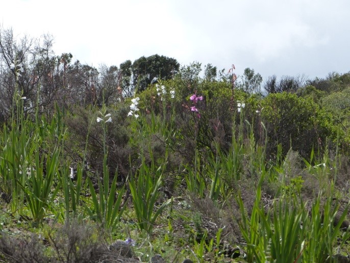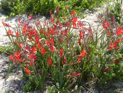 Watsonia coccinea blüht besonders nach Bränden.