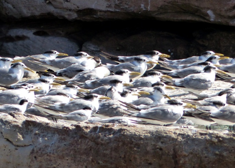 Eilseeschwalben (Thalasseus bergii) bei der Rast.