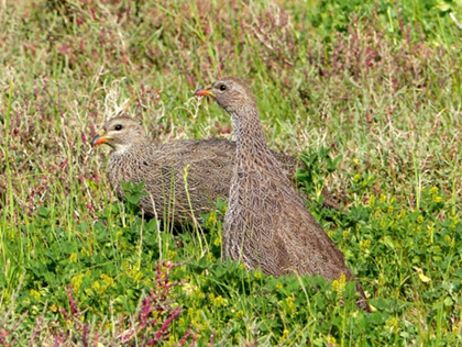 Ein Francolin-Pärchen (Pternistis capensis).