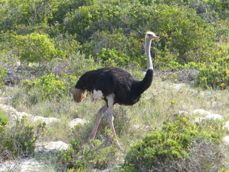 Es folgen danach noch zwei weitere kurze Stopps für blühende Mesemb-Sträucher, dann erreichen wir bei strahlendem Sonnenschein und angenehmen Temperaturen um 10.20 Uhr die Vogelinsel. Während sich Pia um den Eintritt kümmert, besuchen andere vorher noch die Toilettenanlagen, danach können wir frohen Mutes den Fußweg zur größten Kaptölpel-Kolonie des Landes antreten.