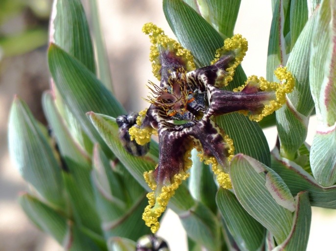 Ferraria crispa mit stark gekrausten Blütenblättern.