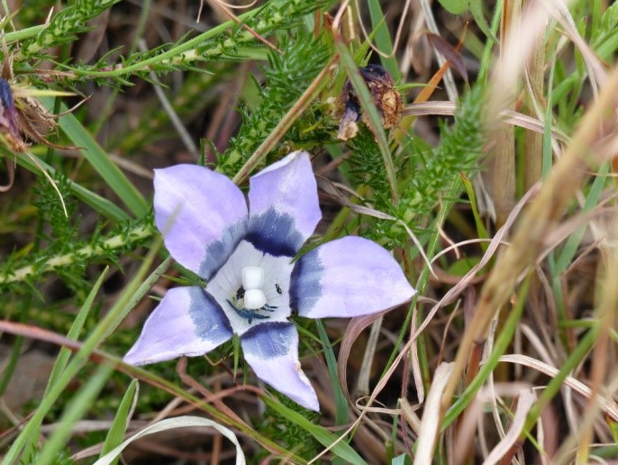 Unterwegs halten wir trotz eingeschränkter Blumenpracht noch einmal an und laufen einen Wanderweg hin und nach 20 Minuten wieder zurück. Nur so lassen sich auch die unscheinbareren Arten entdecken und fotografieren. Vieles davon wäre vermutlich in einem üppigen Blumenteppich untergegangen. Es kommt Wind auf. Der Wetterumschwung meint es wohl ernst. Aber die Landschaft ist nach wie vor großartig und entschädigt für vieles.