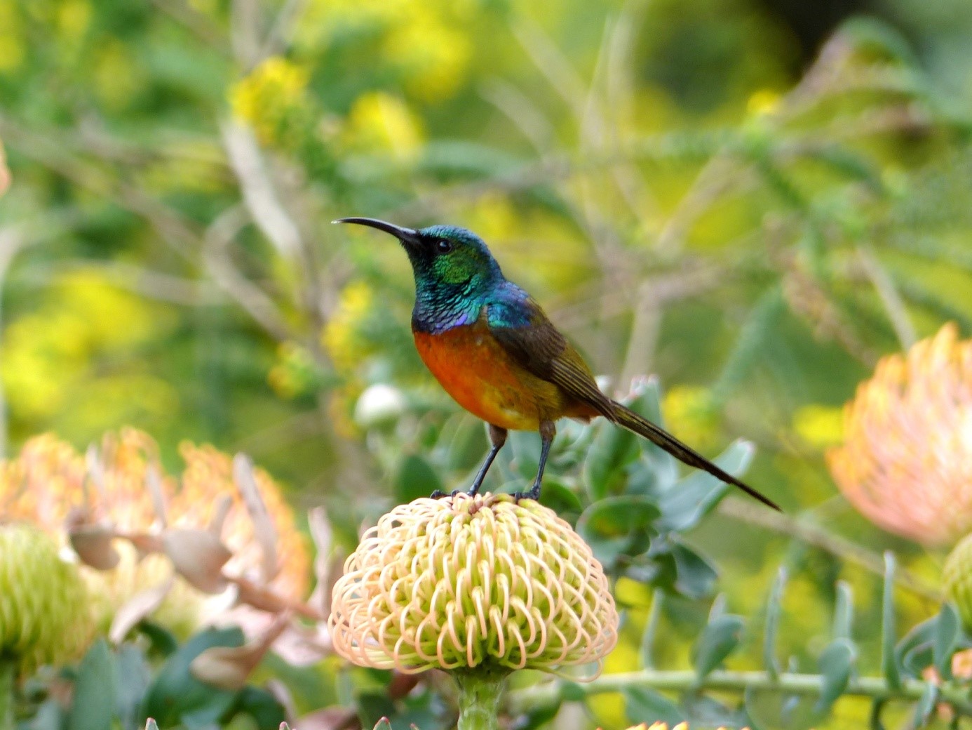 Das „Raketen-Nadelkissen“ Leucospermum reflexum als unser Abschluss-Feuerwerk.