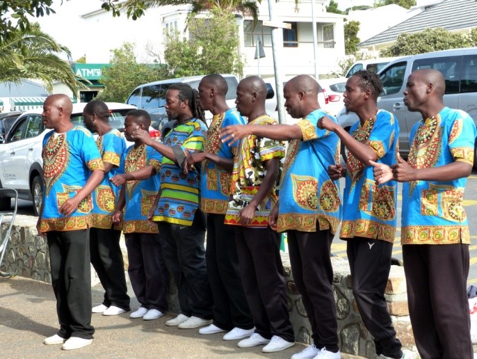 Nach kurzer Zeit fahren wir dann endgültig zur Waterfront und suchen sofort das Restaurant auf, denn die Zeit ist fortgeschritten. Während wir aufs Essen warten, unterhält uns ein Männerchor mit afrikanischer Musik. Vera, die uns freundlicher Weise ihre vielen Bücher geliehen hat, kommt dazu und leistet uns Gesellschaft. Sie war in den Vorjahren unsere Begleiterin. So klingt die Reise im gemütlichen Rund allmählich aus. Aber wir haben ja morgen noch einiges an Programm, daher fahren wir nicht ganz so traurig ins Hotel und sind schnell auf den Zimmern verschwunden.