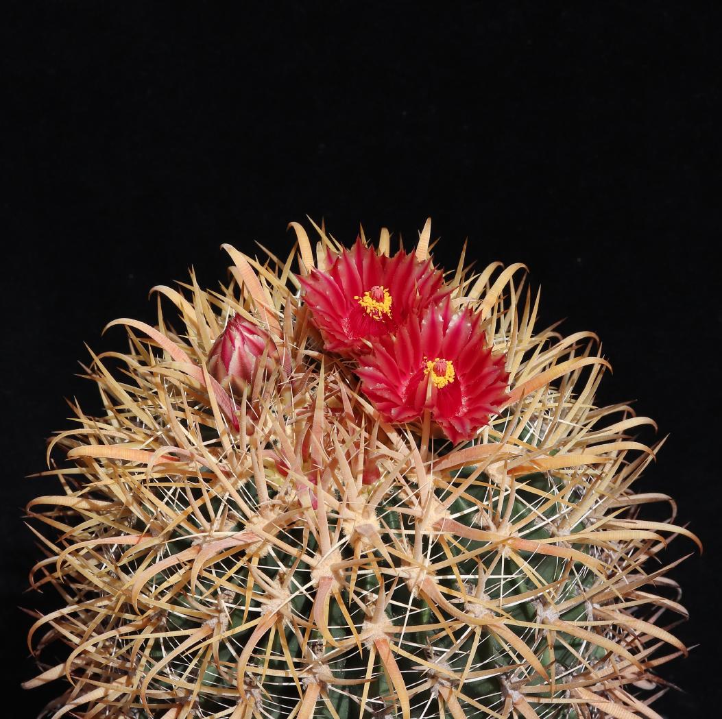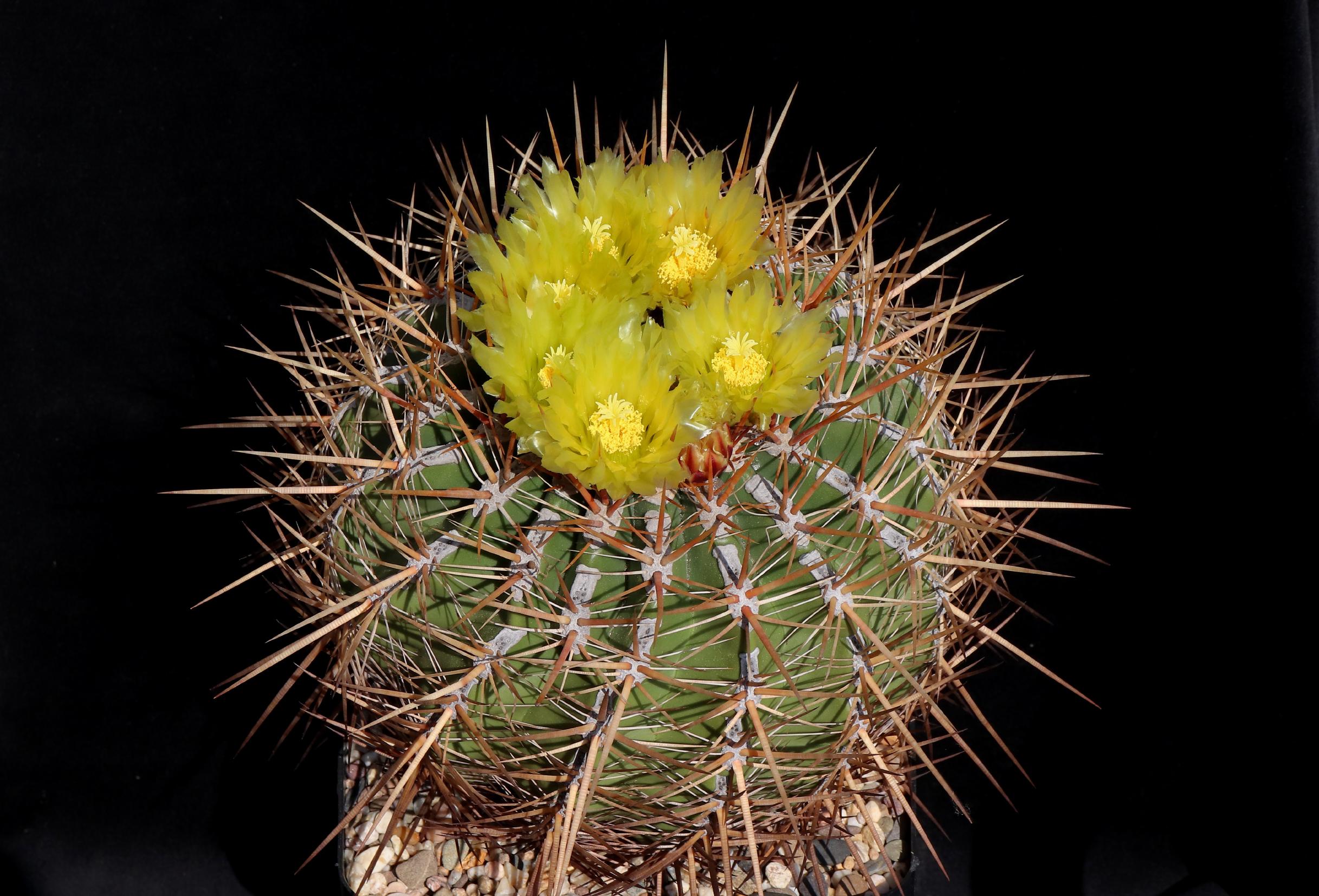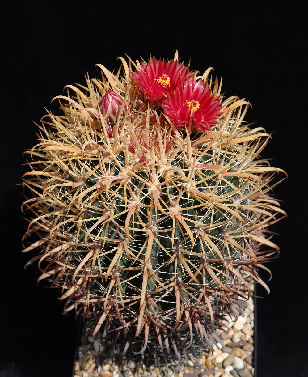 1985 als Ferocactus gracilis (de Herdt-Samen) ausgesät, und schon hat die Pflanze am letzten Wochenende zum ersten Mal geblüht.