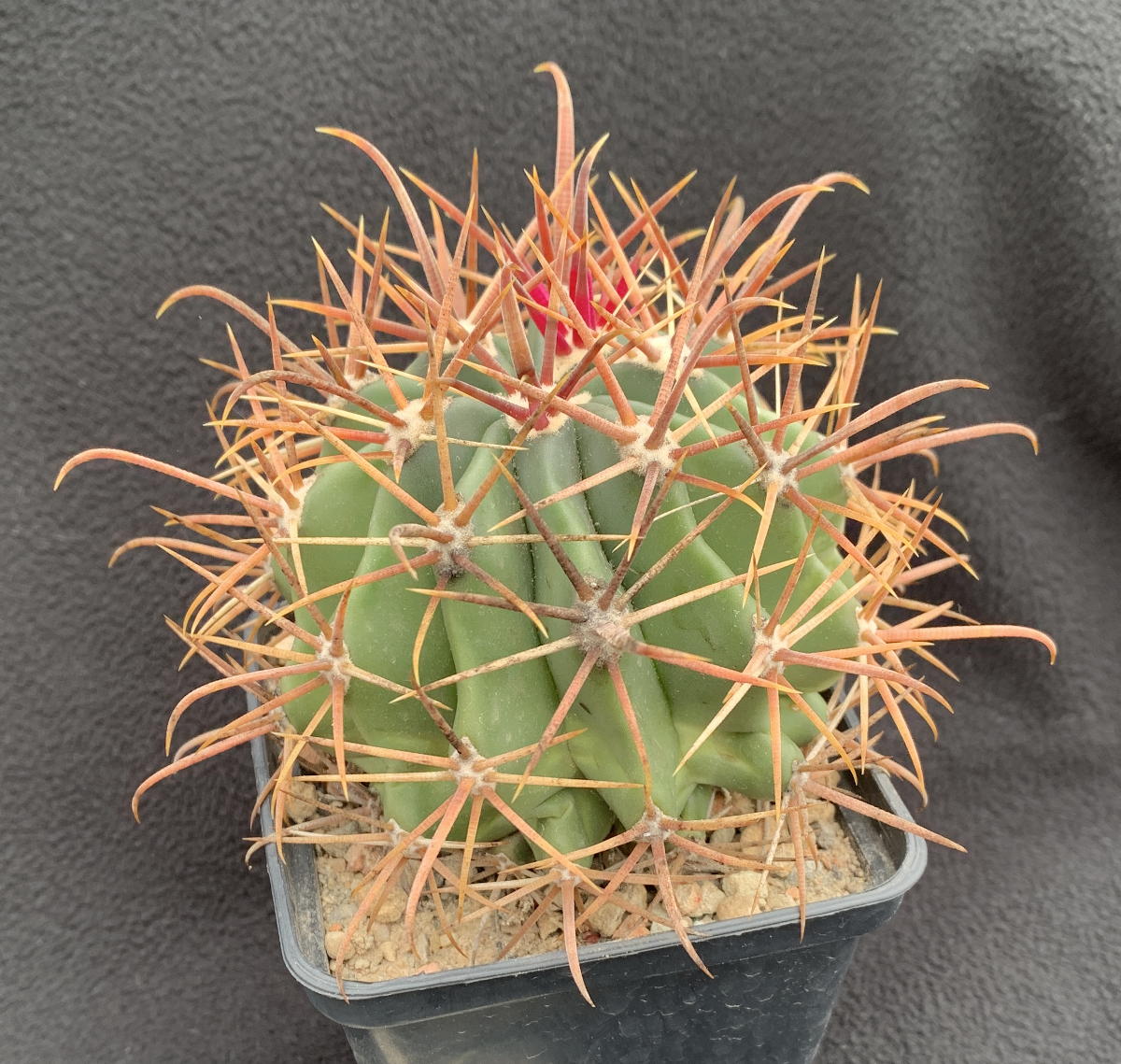 Sie sah etwas anders aus als die anderen Gracilis-Sämlinge. Die Bedornung war grauer, dünner, länger und die Mitteldornen waren gedreht. Nach meinem ersten oder zweiten Baja-Besuch, bei dem ich Feroc. acanthodes subsp. tortulispinus in Natura sehen konnte, war klar: es ein solcher!