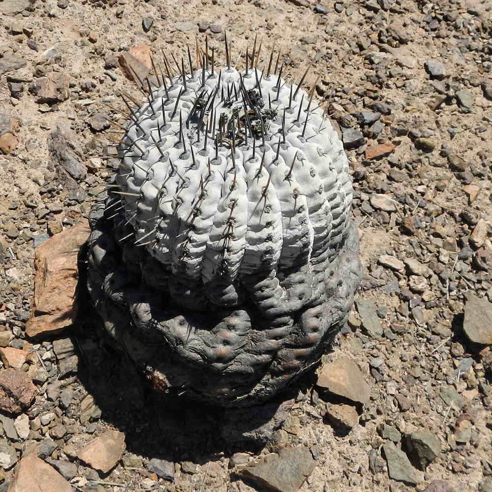 Hier ist eine Copiapoa cinerea, wie sie oberhalb von Taltal zu finden ist: