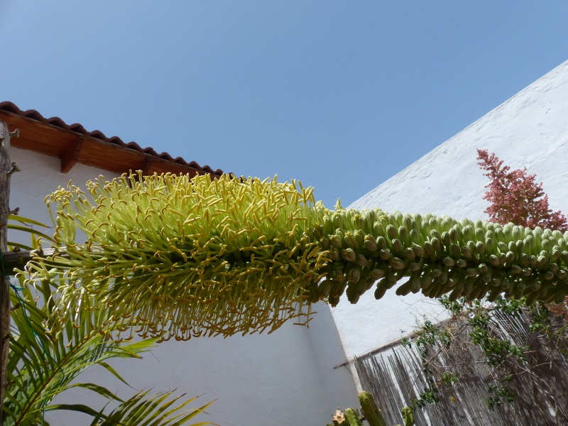 Vor ca. 20 Jahren pflanzte ich in einem Beet im Patio eine kleine Agave, seit April 2020 schob die Pflanze nach und nach