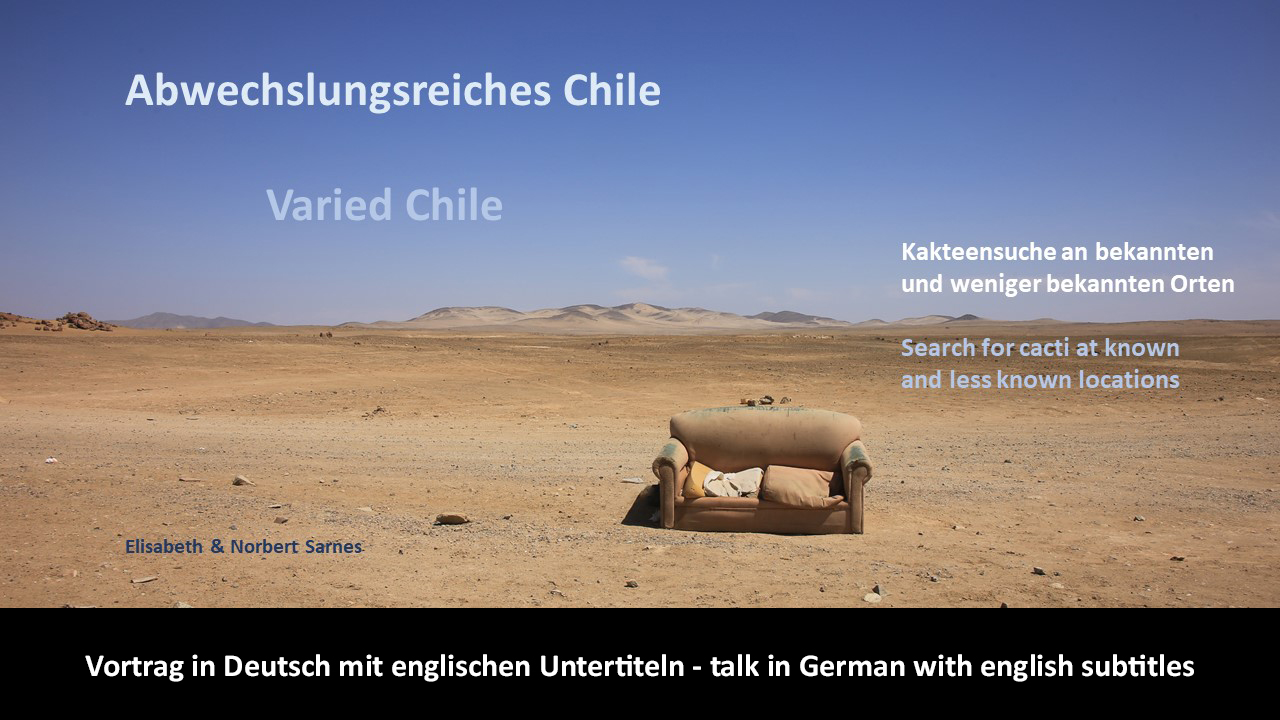 Chile, die Atacama, die Heimat der Copiapoen. Eine spannende Kakteengattung, deren faszinierende Arten an den natürlichen Standorten vorgestellt werden. Der Lebensraum vieler Arten der Gattung ist die Atacama, die Küsten- und Nebelwüste Chiles, die zu den trockensten Wüsten der Welt gehört. Die Copiapoen überleben die extremen Bedingungen durch die häufigen Nebel, eine hohe Wolkenbedeckung und die doch immer wiederkehrenden Niederschläge. Die Reise geht entlang der grandiosen Küstenlandschaft, beginnend bei Antofagasta mit Copiapoa atacamensis bis südlich Copiapó mit Copiapoa dealbata. Die Reise gibt aber nicht nur einen Überblick über die Copiapoen, sondern zeigt auch die begleitenden Kakteenarten in einer für uns Mitteleuropäer faszinierend kargen und extremen Landschaft.