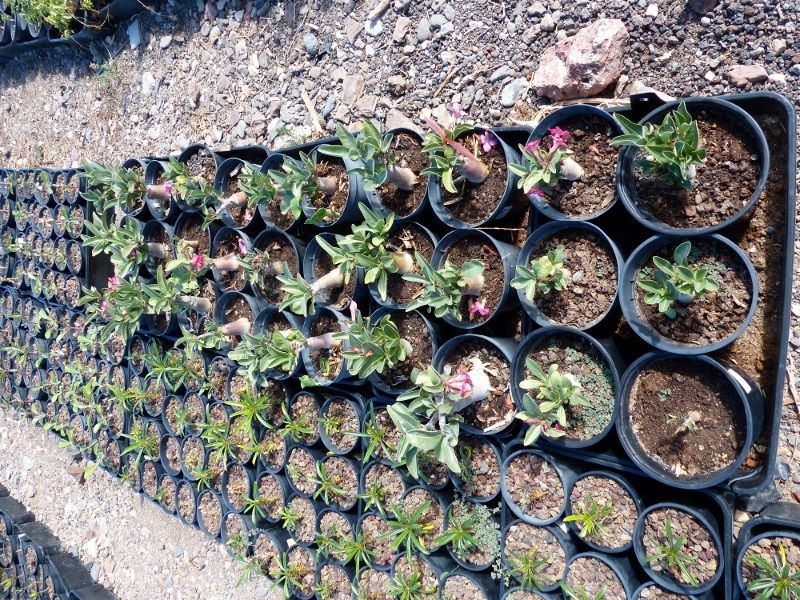 Hier auf Gran Canaria ist ein ideales Klima zum kulivieren von Adenium Pflanzen, viele Pflanzen erreichen nach einigen Jahren einen Caudex