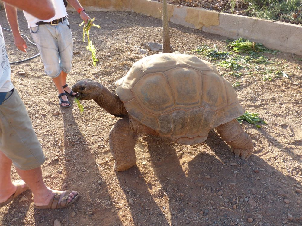 Jim brachte vor ca. 60 Jahren eine handtellergroße Schildkröte von den Seychellen mit, heute ein Riesentier. Es gibt dazu auch ein Weibchen.