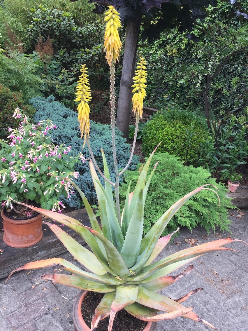 Die Aloe blieb auf dem Kübel, wuchs mit der Rose, wurde gegossen und gedünkt mit ihr.