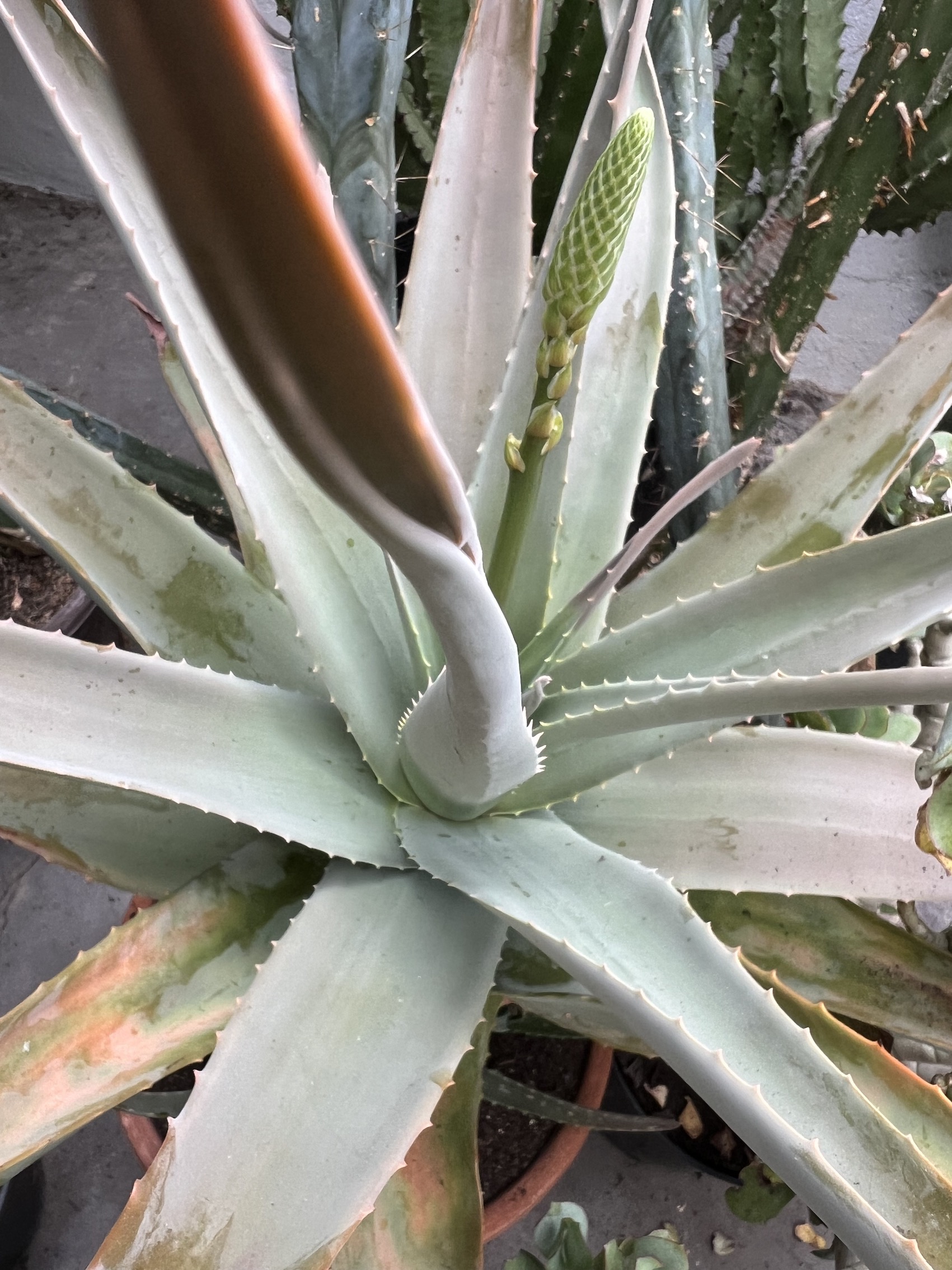 Erst heute habe ich gemerkt dass eine Aloe vera wieder eine recht große Knospe hat.