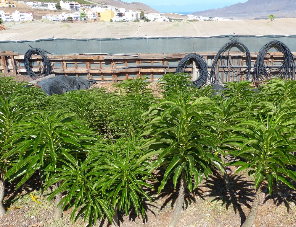 auf Gran Canaria ausgepflanzt, Fotos von 2020 und 2021. Die Pflanzen haben 2024 eine Höhe von ca. 1,50m erreicht.