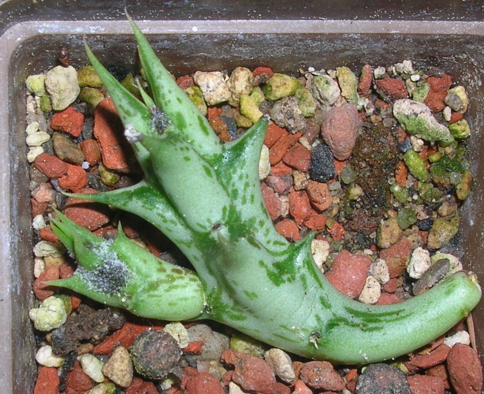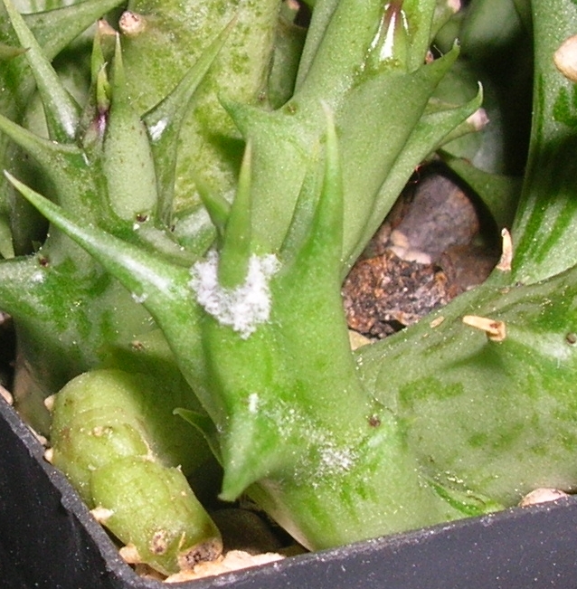 Das Pilzchen auf der Orbea dummeri sieht mir eher nach etwas anderem aus, zumindest auf dem zweite Bild. Diagnosen anhand von Bildern sind selten sicher, aber mir ist das Mycel zu fluffig für einen Echten Mehltau - vielleicht war es ein Fusarium, reine Spekulation. Wegwerfen war die beste Möglichkeit.