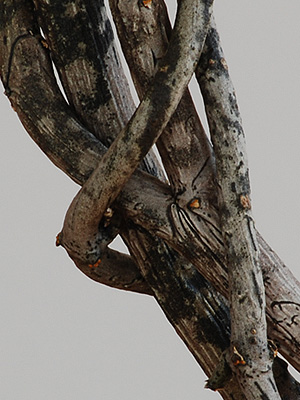 Und noch ein Ausschnitt, damit man mal die wie von Licht und Schatten gefleckte Oberfläche der Pflanze sehen kann, die die Art in freier Wildbahn, wo sie im Strauchwerk herumkriecht, sehr gut tarnt.