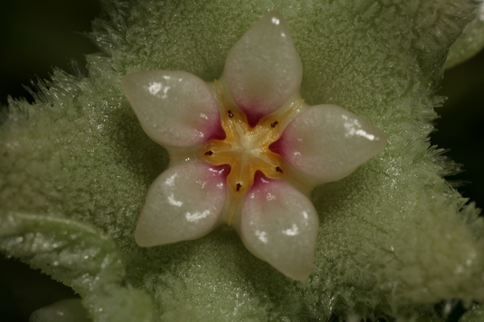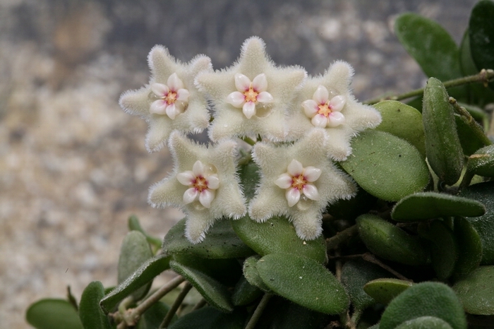 Hoya serpens ist eine kleinblättrige, in ihrer Heimat Indien (Himalaya-Region) am Boden kriechende, sehr haarige Hoya. Die Blätter werden nur 1-2 cm groß, die Stängel sind fadenartig. Sie bevorzugt eher kühlere Bedingungen - schattig darf es auch sein.