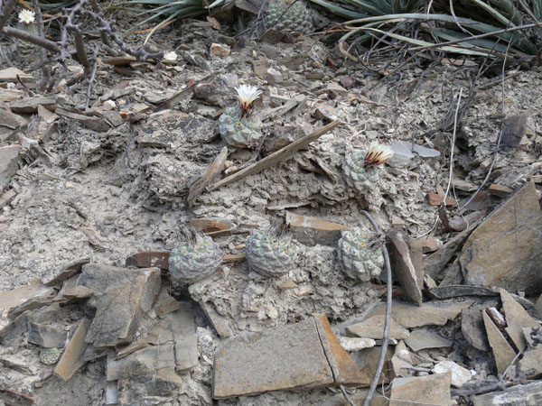 Hier noch 2 Photos von Superpflanzen am Standort, die nach Cutak Strombocactus disciformis v. seideli genannt werden: