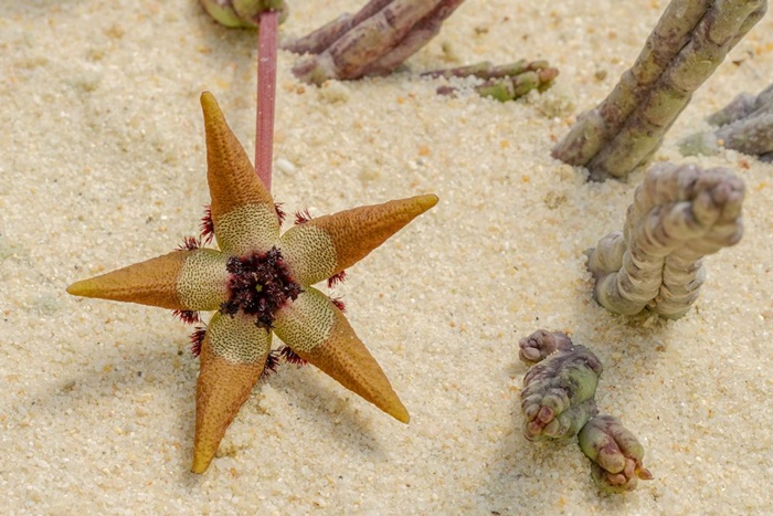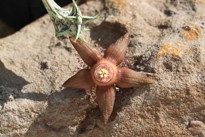 Eine Forschungsreise, die das Ziel hatte, neue Arten aufzuspüren, endete tatsächlich mit der Beschreibung von Huernia rubra. Sie ist ein unkompliziertes Seidenpflanzengewächs mit einer hübschen Blüte.
