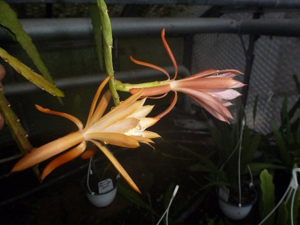 Hallo Arnhelm, deine Züchtungen mit D. macranthus sehen ja schön aus. Gut am D.macr. ist, das er im Herbst/ Winter blüht. Darum habe ich ja auch einige Züchtungen damit gemacht. Aber nicht direkt mit der Wildpflanze, sondern mit Hybriden, wie zum Beispiel George´s Favorite, die davon abstammen. Zur damaligen zeit hatte ich noch keinen macranthus. Es gibt ja verschiede Klone von dieser Art. Petersen züchtete mit der Aufsammlung von Lau (Lau 1263) Dieser blüht miesstens nur im Frühling. Ich habe zalreiche Sorten gezüchtet, die mehrmals im Jahr blühen können. Reine Winterblüher habe ich auch, diese stammen von Epiphyllum anguliger ab. Durch einkreuzen mit George´s Favorite ist es mir gelungen die eigendlich E. anguliger Blütezeit zu strecken. Meine 6 Registrierten Züchtungen dieser Aussaatreihe bescheren mir den ganzen Winter immer wieder Blüten. Andere Züchtungen mit E. anguliger blühen auch im Winter, aber nicht so reichlich. Aber jede Blüte ist im Winter Willkommen. LG Rudolf
