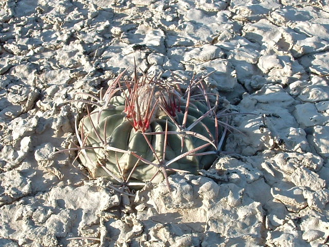 ja, ich kann mich erinnern an 1979 oder 80 - 81, das war auf einer meiner ersten selbst ausgearbeiteten Reisen nach Mexico. Da gab es die Autopista von Saltillo nach Torreon noch nicht und die Mex 40 war noch eine normale Landstraße. Vor dem Cerro Bola gab es / gibt es auf der nördlichen Straßenseite eine niedrige Felsformation in der Lehmebene. Hier fielen mir damals schon die irrsinnig lang bedornten, für mich damals einfach irgend ein Ferocactus, auf. Heute, beziehungsweise seit einigen Jahren weiß ich, daß es auch Homalocephala texensis ist. Vor einigen Jahren sah ich mal eine Pflanze auch weiter westlich hinter dem Abzweig La Cuchilla mit ausgeräuberten alten Früchten und fand ein einziges Samenkorn, was zu Hause natürlich nicht keimte. Soviel zu Cerro Bola.