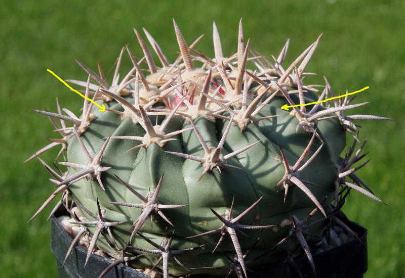 nachdem ich gerade von einem dreiwöchigen Urlaub zurück bin habe ich an meinen Homalocephala texensis-Pflanzen die ersten Knospen entdeckt. Die große und starkdornige Pflanze habe ich bereits hier vorgestellt, auch mit Blüte. Aber dieses Jahr kommt auch erstmalig eine zweite, nicht so stark bedornte Pflanze mit Knospe. Da das die erste Blüte wird bin ich natürlich sehr gespannt auf Größe, Farbe und sonstige Unterschiede, wenn es denn Unterschiede gibt.