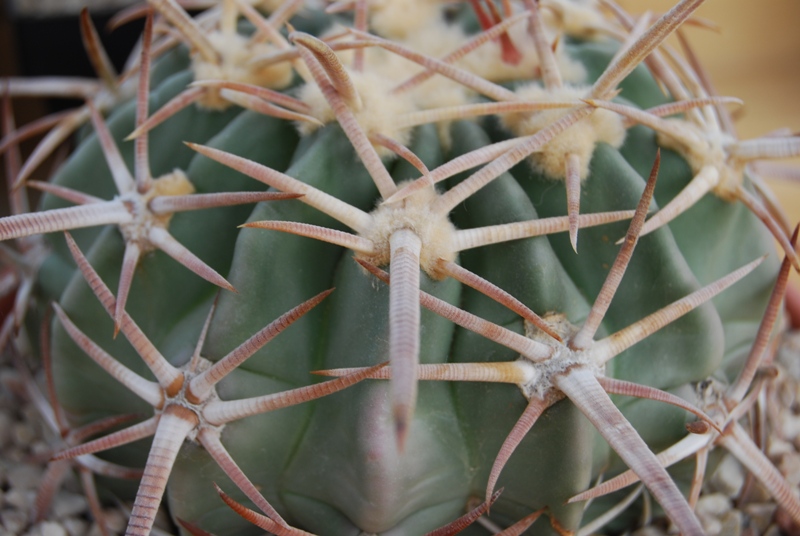 die Pflanze ist aber auch sehr schön bedornt. Ich habe auch noch mehrere kleinere Pflanzen, auch mit unterschiedlicher Dornenlänge. Eine mit knapp 10 cm Körpergröße hat bei mir schon geblüht, sodaß ich annehme, daß Deine dieses Jahr wohl blühen wird. Eine andere, die so ca. 13 - 14 cm hat, allerdings noch nicht.