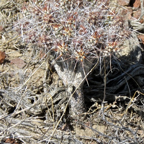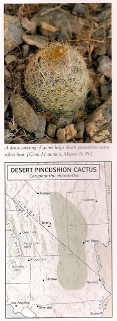 Und dann noch ein Hinweis: Die Escobaria deserti ist die einzige aus der Verwandtschaftsgruppe der Escobaria vivipara, die eine so kleine und bis zu nahezu braune Blüte haben kann. Und unter dem Namen Coryphantha chlorantha noch eine Standortangabe von Stephan Ingram (Cacti,...of CA and NV)