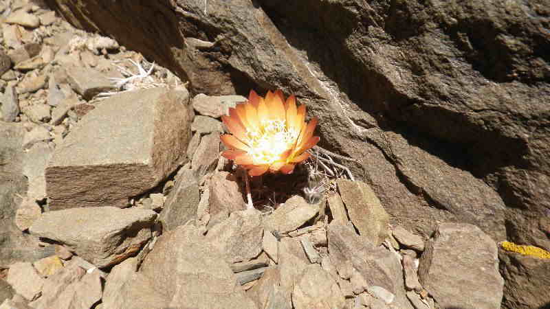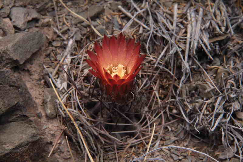 Ein wunderschöner, rötlich blühender Pyrrhocactus. Der andere rotblühende Py. andreaeanus kommt ja viel nördlicher vor (Sierra Famatima, La Rioja) als Mendoza....?!