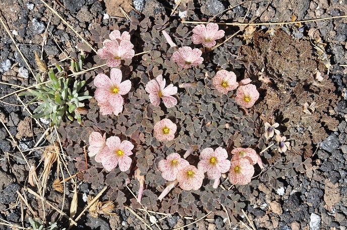 Ein Blick aus dem Cerro Diamante - auf die Digue Aqua del Toro ...links ein Teil der Vulkankaldera ...und oben ausser Kakteen auch diese wunderschöne Oxalis vergesellschaften mit einer Viola vulcanica (?)