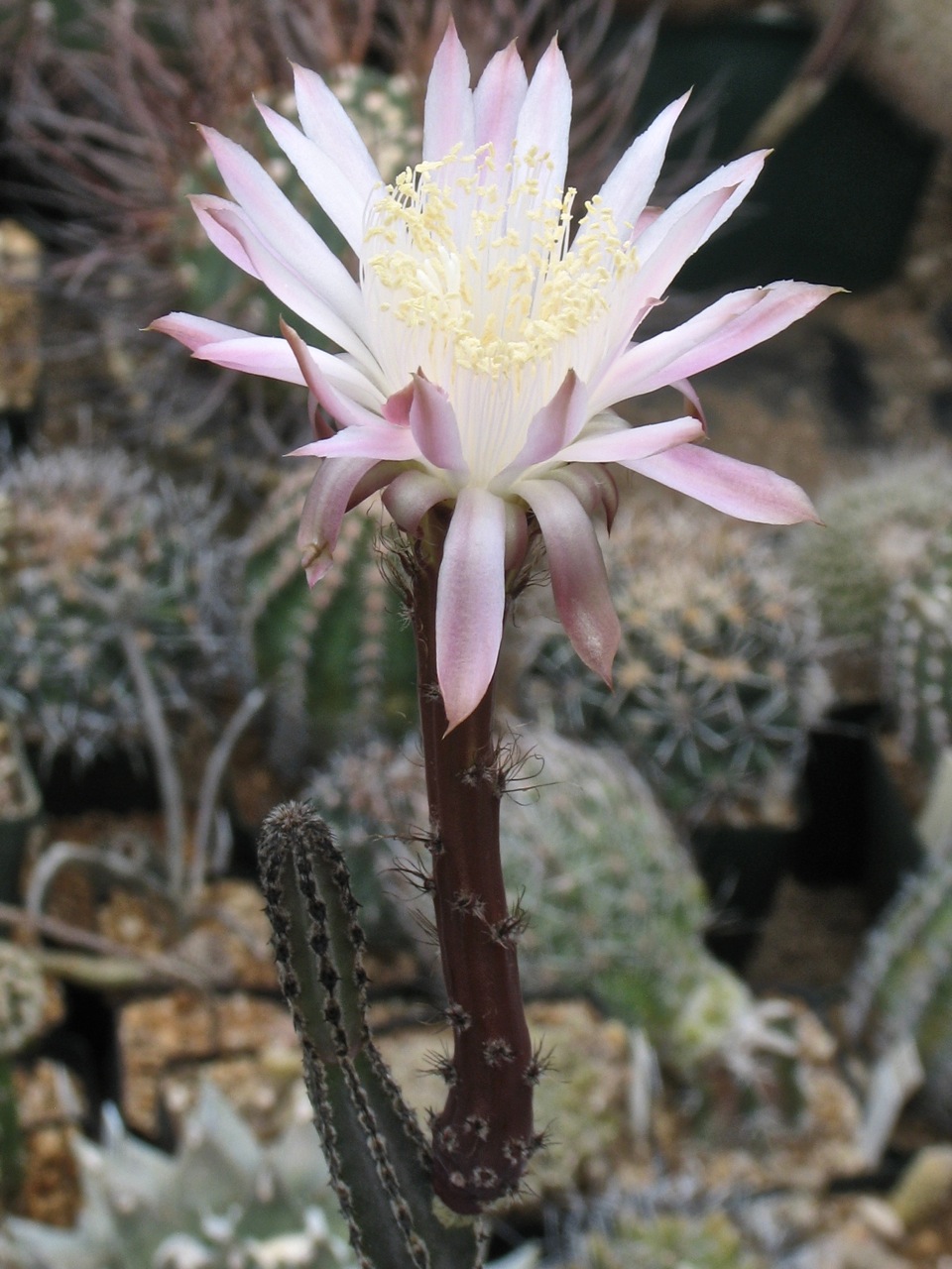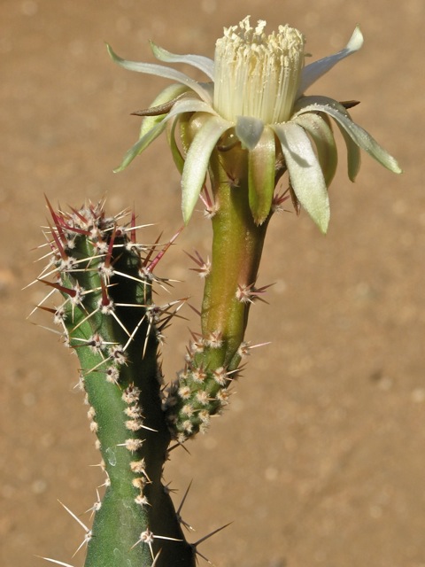 der sieht ja so garnicht nach Peniocereus aus, hat aber sehr interessante Blüten. Hat der auch die berühmte Knolle im Boden? Ich hab auf einer meiner Reisen zusammen mit meinen Begleitern mal im Süden von Oaxaca, wo das Land schmal wird, am Istmus, einen bleistiftstarken Cereus im Buschland gefunden. Mehr durch Zufall, weil starker Winterregen die Oberseite der Knolle freigelegt hatte und neue Triebe aus der Knolle kamen. Diese ersetzten die abgebrochenen alten. Nach längerem Suchen fanden wir auch unversehrte Pflanzen, die irrsinnig schwer zu finden waren, da die Triebe, auch die frischen, täuschend den Zweigen der Büsche glichen. Dieser Cereus sollte Neoevansia sein, auch mit einer kiloschweren dicken Rübe in der Erde, eingeklemmt zwischen Felssteinen im harten Lehm. Nur Blüten haben wir keine gesehen.