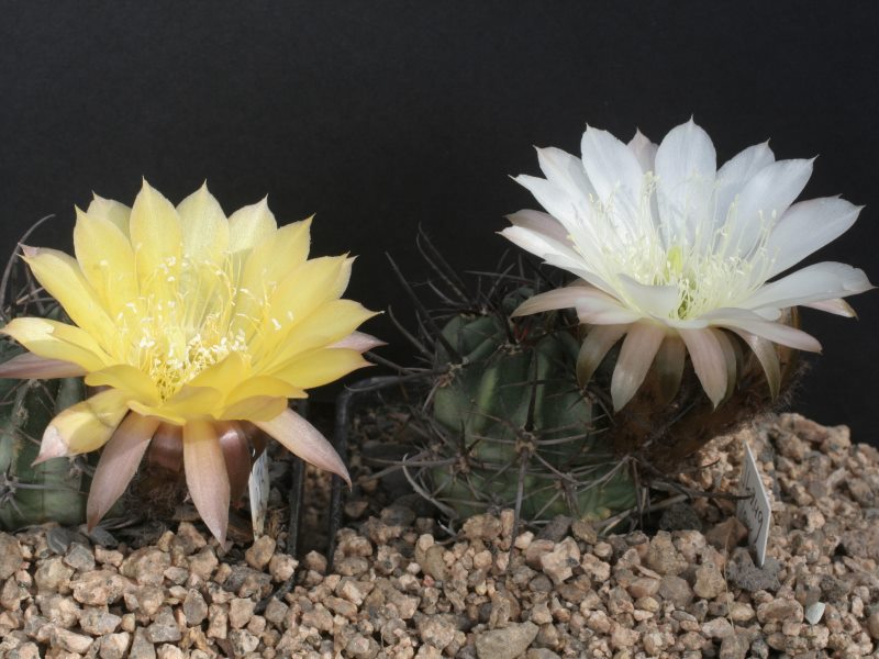 Hallo, zwei L. ferox v. longispina blühten gleichzeitig gelb und weiß. Die Pflanzen sind noch recht klein aber sehr schön in ihrer Bedornung.