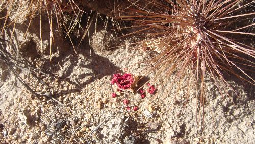 Leider haben wir auf der gesamten Strecke mehr tote als lebende Exemplare gefunden. Hier hat die Trockenheit ganze Arbeit geleistet. Direkt neben der Neowerdermannia konnten wir folgendes Bild machen, das ganz gut zeig,t wodurch Tunilla sich von anderen Opuntien unterscheidet.