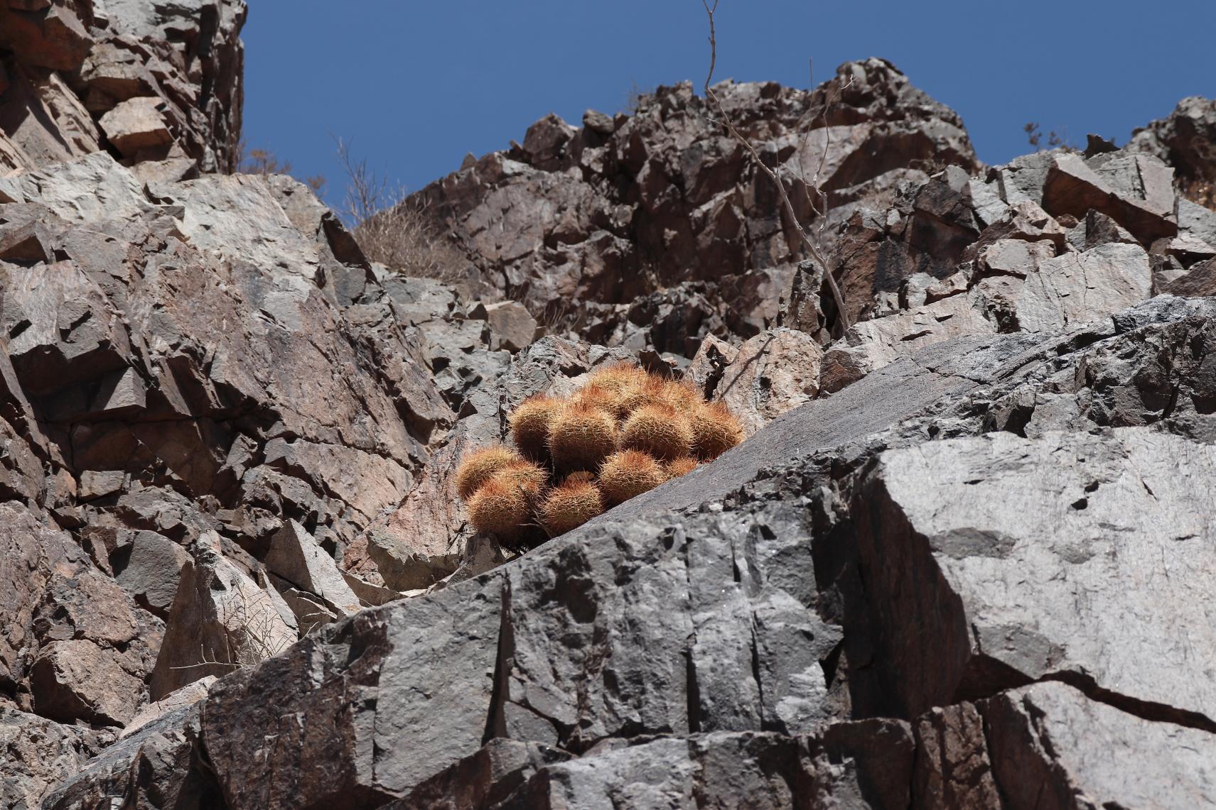 Zur Erinnerung: Cop. ahremephiana gibt es im Eingangsbereich der Schlucht, der Hang mit dem grauen Gestein im Vordergrund ist die Heimat von