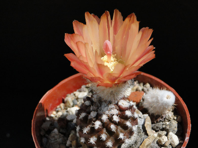 "Pyrrhocactus setosiflorus" steht auf dem Schild dieser Pflanze, die gerade erstamls bei mir blüht. Nach Hunt ist es Eriosyce heinrichiana var. setosiflora. Nur stimmt das Schild überhaupt? Mir mangelt es leider an Vergleichsmöglichkeiten ... Besten Dank und ebensolche Grüße