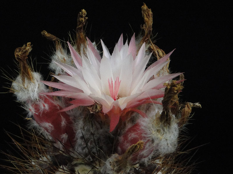 der Vollständigkeit halber noch zwei Bilder von Neoporteria/Neochilenia floccosa - Eriosyce taltalensis var. floccosa sensu Hunt -, die schon vor drei Wochen Ihre Blüten öffnete. Die Blüten sind deutlich blasser als diejenigen der Pflanze von Cay http://kuas-forum.de/viewtopic.php?f=35 ... cosa#p5442.