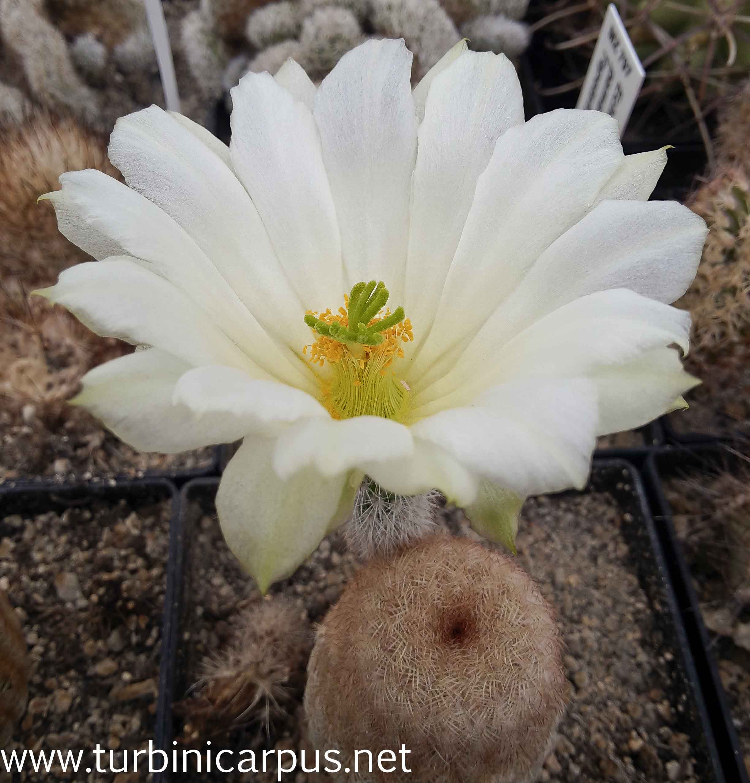 In einer Sämlings schale (bei Beisel) in der tausende Ec. rigidissimus ssp. rubispinus auf liefen waren plötzlich Pflanzen mit heller bräunlicher Bedornung dabei, diese wurden selektiert und siehe da sie blühten weiß, da es mehrere waren konnte eine generative Vermehrung stattfinden, quasi eine in Kultur entstandene wieder vererbbare Form.