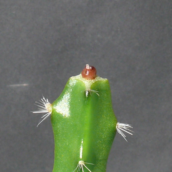 heute war noch so schöne Sonne, da hab ich mal einige Bilder von meinen am 7. Okt. gepfropften Sämlingen gemacht. Der gezeigte Sämling ist jedoch erst etwa 2,5 mm groß und könnte alles mögliche sein, d.h. man kann noch nicht erkennen, daß es Mam. luethyi ist. Für mich ist aber erst mal wichtig, daß er angewachsen ist. Er ist etwa 18 cm hoch auf Selenicereus gepfropft und steht jetzt zusammen mit den anderen Sämlingspfropfungen im Gwh. auf dem Tisch. Die Bilder habe ich vor einen grauen und einem weißen Kartonhintergrund gemacht.