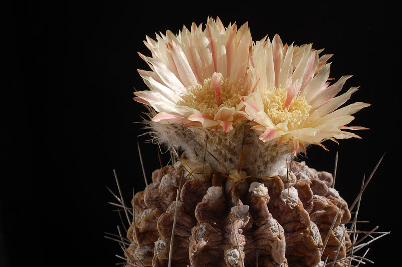 damit ich Jens als Einzelkämpfer in diesem Thread mal etwas zur Seite stehe, meine beiden P. bulbocalyx, 9 Jahre nach der Aussaat, blühen mal wieder (den Turbinicarpus im Hintergrund einfach ignorieren):