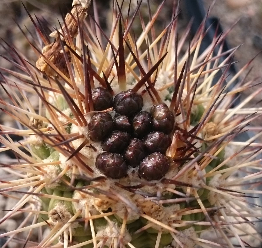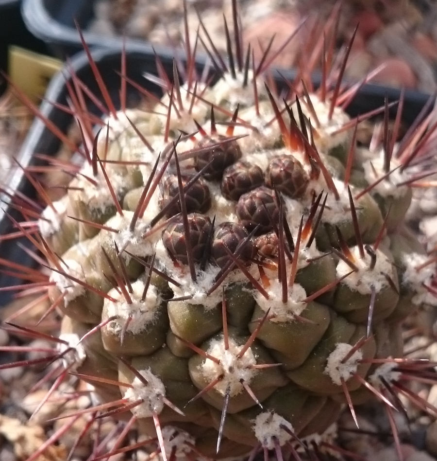 Was die anderen Kakteenarten betrifft...so kann man weiter sehen: Cumulopuntia rossiana mit gelben bis roten Blüten, Oreocereus, Lobivia ferox, Lobivia ? (3-4cm grosse...), M.nigrispina, C.boliviana, Maihueniopsis glomerata, diese z.B. G.Charles für ssp.hypogaea (= molfinoi) hält,...ich nicht!