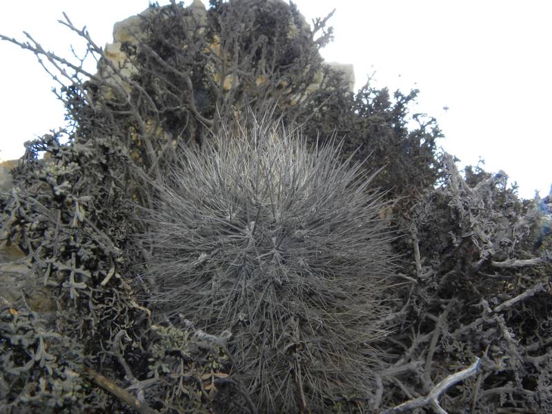 Eriosyce crispa, wie von Nobby vorgeschlagen, dürfte passen. Wobei ich ernsthafte Probleme mit der Namesgebung der örtlichen "Neochilenen" habe. Bei Freirina fanden wir neben der napina noch zwei weitere Arten mit Fragezeichen. Die mit der feinen borstenartigen Bedornung hatte ich zunächst ebenfalls als crispa bezeichnet...