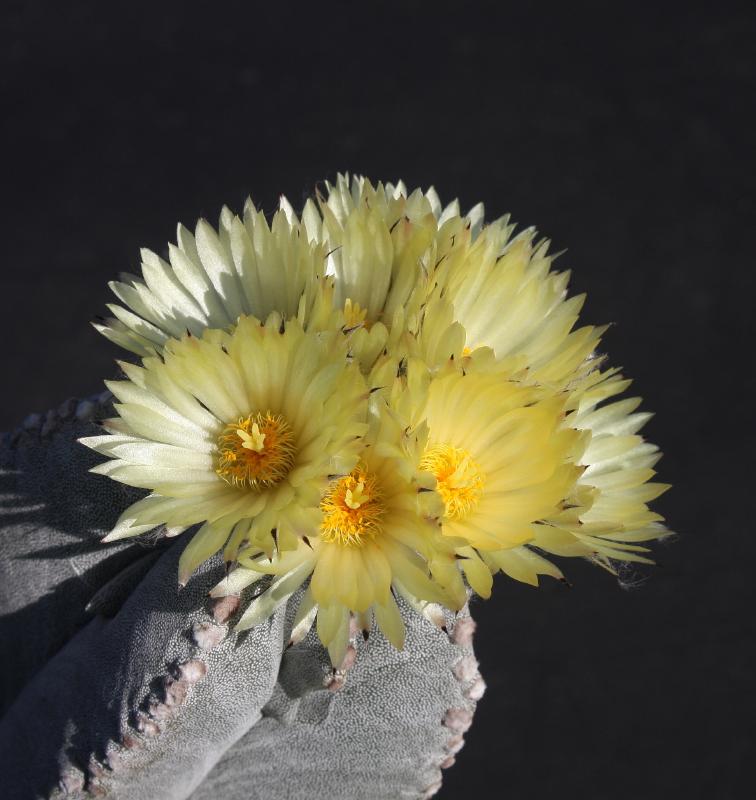 Dann haben noch viele Turbinicarpen(siehe http://kuas-forum.de/viewtopic.php?f=18&t=348&start=36 ), Astrophyten,ein Ariocarpus trigonus und noch ein paar andere Knospen. Die Astro´s werden aber wahrscheinlich leider nicht mehr blühen.