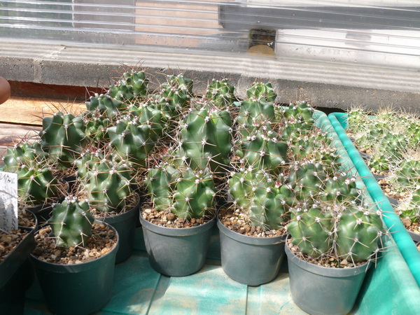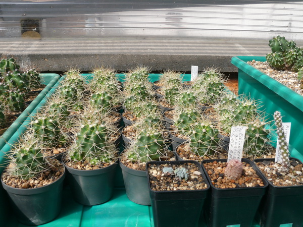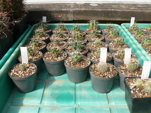 meine diversen frostharten Echinocereen haben einschließlich der Sämlinge den letzten Winter bei min. -18°C trocken unter dem Vordach ohne Schäden verbracht. Hans-Jürgen/Hansi berichtete über das „Aufwecken“ der Pflanzen nach der „Schneeschmelze-Methode“, d.h. durch anstauen und gießen mit Düngerwasser in doppelter bis dreifacher Konzentration. Dieses habe ich vor vier Wochen, am 15.März, durchgeführt und habe die Sämlinge angestaut und auch die großen Pflanzen kräftig gegossen. Heute nun kann ich sagen, dass sich das gelohnt hat. Die Pflanzen haben sich innerhalb kürzester Zeit gefüllt und befinden sich jetzt in vollem Wachstum. Die Größe der vorher stark geschrumpften Pflanzen hat sich fast verdreifacht. Am Anfang dieser Reihe habe ich schon über die Pflanzen berichtet.