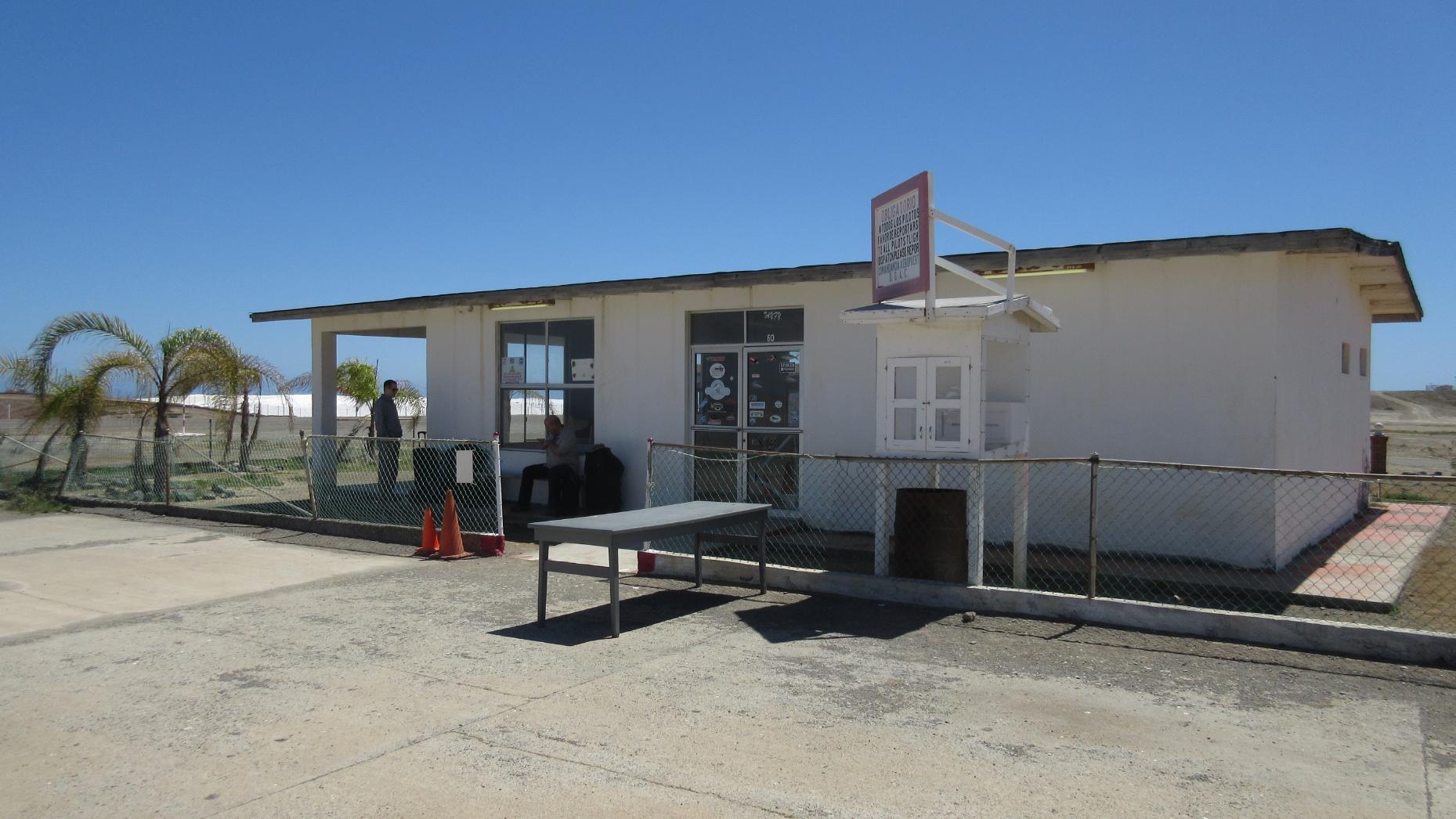 Die Checkin-, Warte-, Empfangs- und sonstwasnoch-Halle - wir waren etwas früh für den Rückflug. Abgefertigt wird draußen am Tisch ... .