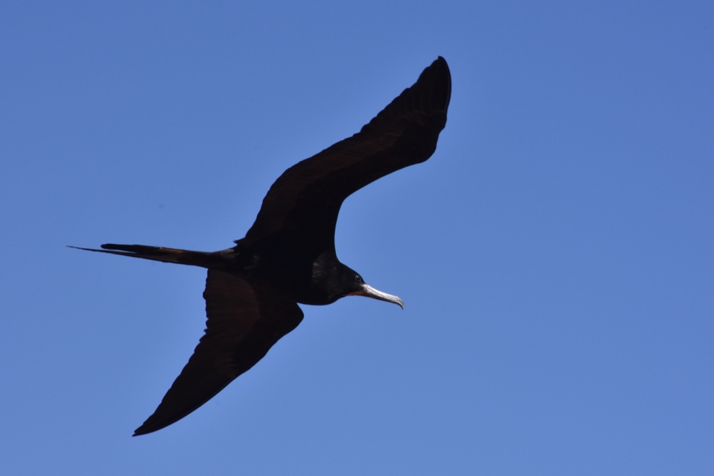Fregattvogel - kurz nach misslungenem Kleptoparasitismus :-) - der einer Möwe fast abgejagte Fisch klatschte irgendwo zwischen die Felsen ...