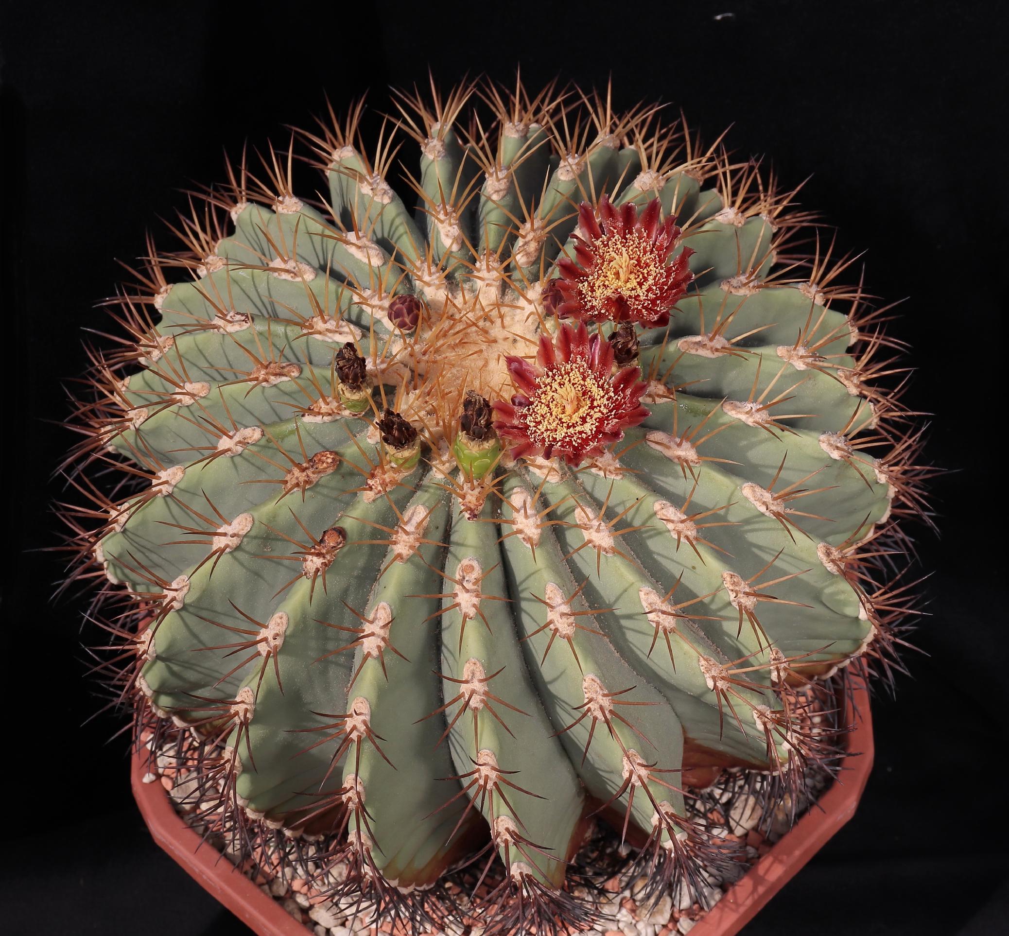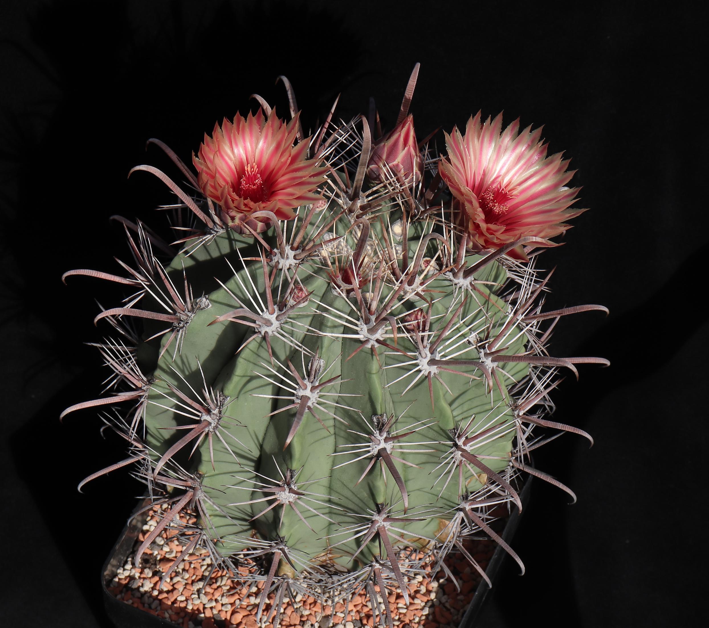 Wenn ich beide Pflanzen so betrachte, kommen mir allerdings starke Zweifel, ob der "Townsendianus" überhaupt ein F. townsendianus ist. Bedornung und Blütenfarbe sind sehr ähnlich. Feroc. townsendianus hat üblicherweise auch nicht so rote Blüten ... .
