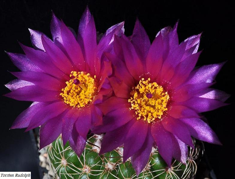 wo man am selben Standort gelb und violett blühende Noto. uebelmannianus sieht.