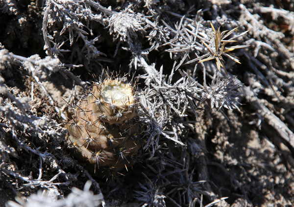 Die wunderschön farbig bedornte Form aus dem Bereich nördlich von Perito Moreno und die folgende ziemlich kahle Pflanze aus dem Süden: