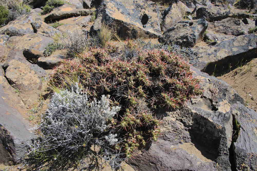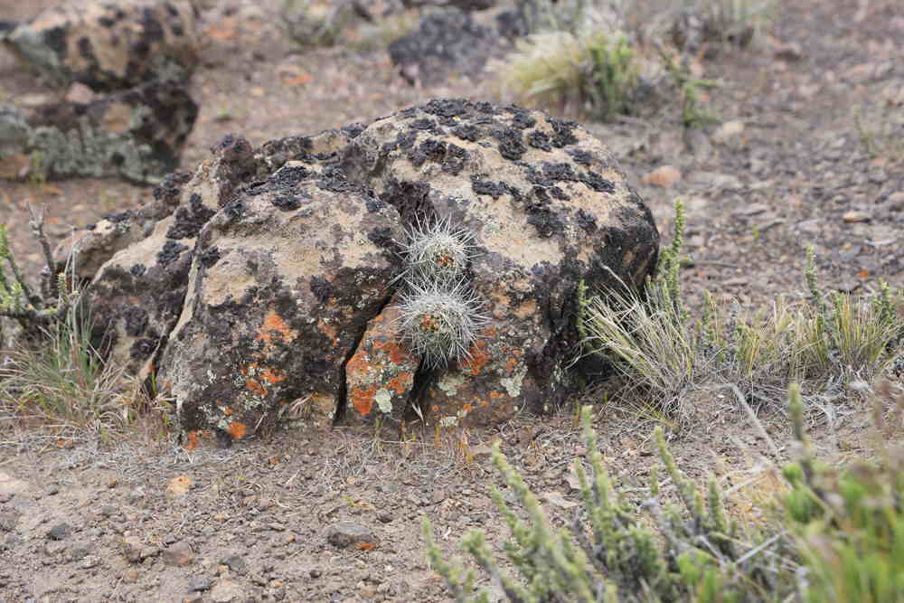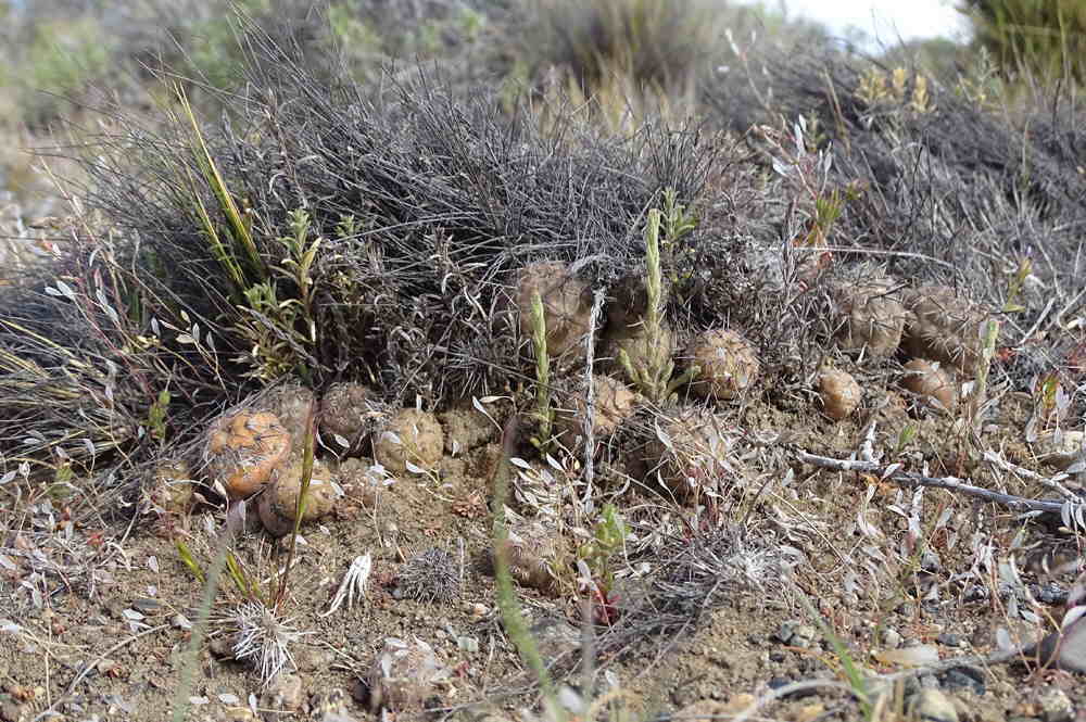 Bevor wir unser Tagesziel erreichen, halten wir an einem Punkt, an dem wir vor Jahren zusammen mit Roberto Kiesling wunderschöne Polster von Pterocactus araucanus gefunden haben. Und tatsächlich - die Pflanzen sind noch immer hier!
