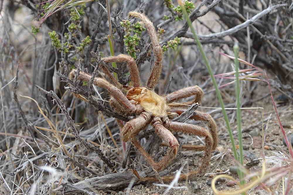 Wenn man intensiv nach Pflanzen Ausschau hält, findet man auch andere Dinge, wie diese Spinne, die "am Busch" verdorrt ist.